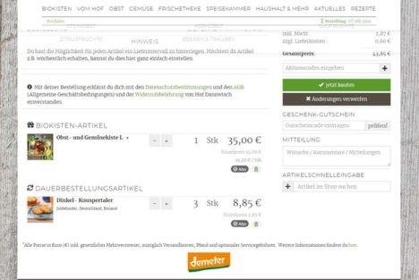 Einige Umfrageteilnehmende haben sich das Speichern des Warenkorbs gewünscht. Das ist insofern bereits möglich, als dass du deinen Warenkorb ab einem Warenwert von 20 Euro (Mindestbestellwert) abschicken kannst und anschließend weiter bearbeiten beziehungsweise ergänzen kannst. Keine Sorge: Wir liefern nicht doppelt, wenn du den Warenkorb nochmal verschickst.