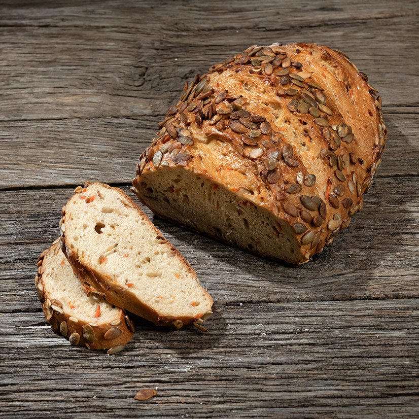 Bahdes besonderes Geschmackserlebnis. Lockeres Dinkelbrot mit eingebackenen Möhrenraspeln und Kürbiskernen.