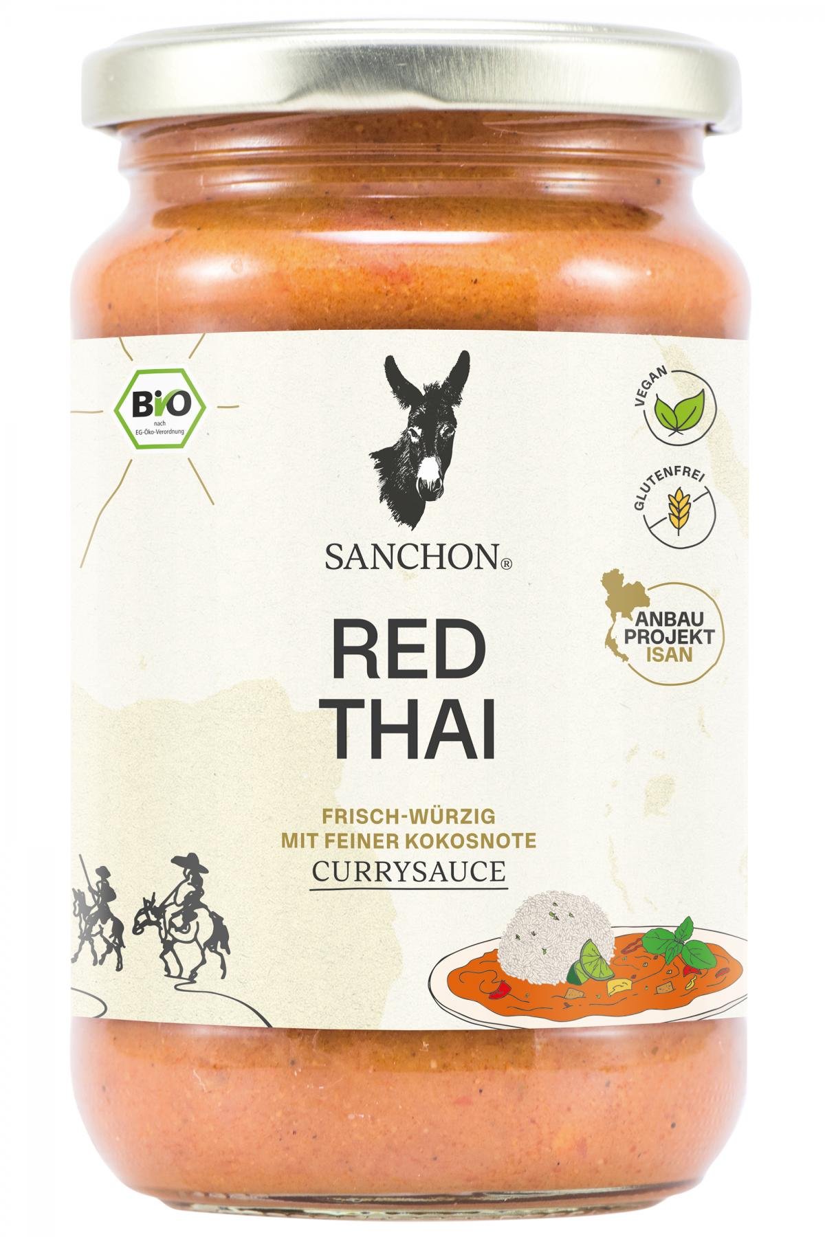 Currysauce Red Thai ist eine vegane, mit Kokosmilch verfeinerte, pikante Currysauce. Dieses Currygericht erfreut sich in Thailand einer sehr großen Beliebtheit.
