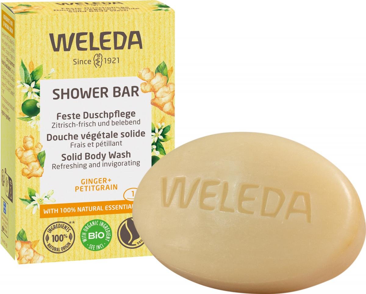 Die Weleda Feste Duschpflege verspricht natürliche Pflege, und zwar plastikfrei*. Mit natürlicher Grundseife aus pflanzlichen Ölen sowie wertvoller Bio-Sheabutter bietet sie eine zart-schaumige Reinigung. 100 % natürliche ätherische Öle und Pflanzenextrakte sorgen für ihre jeweiligen charakteristischen Duftnoten. Zitrisch-frischer, würziger Duft von 100 % natürlichen ätherischen Ölen und Pflanzenextrakten wie Ingwer und Petitgrain.