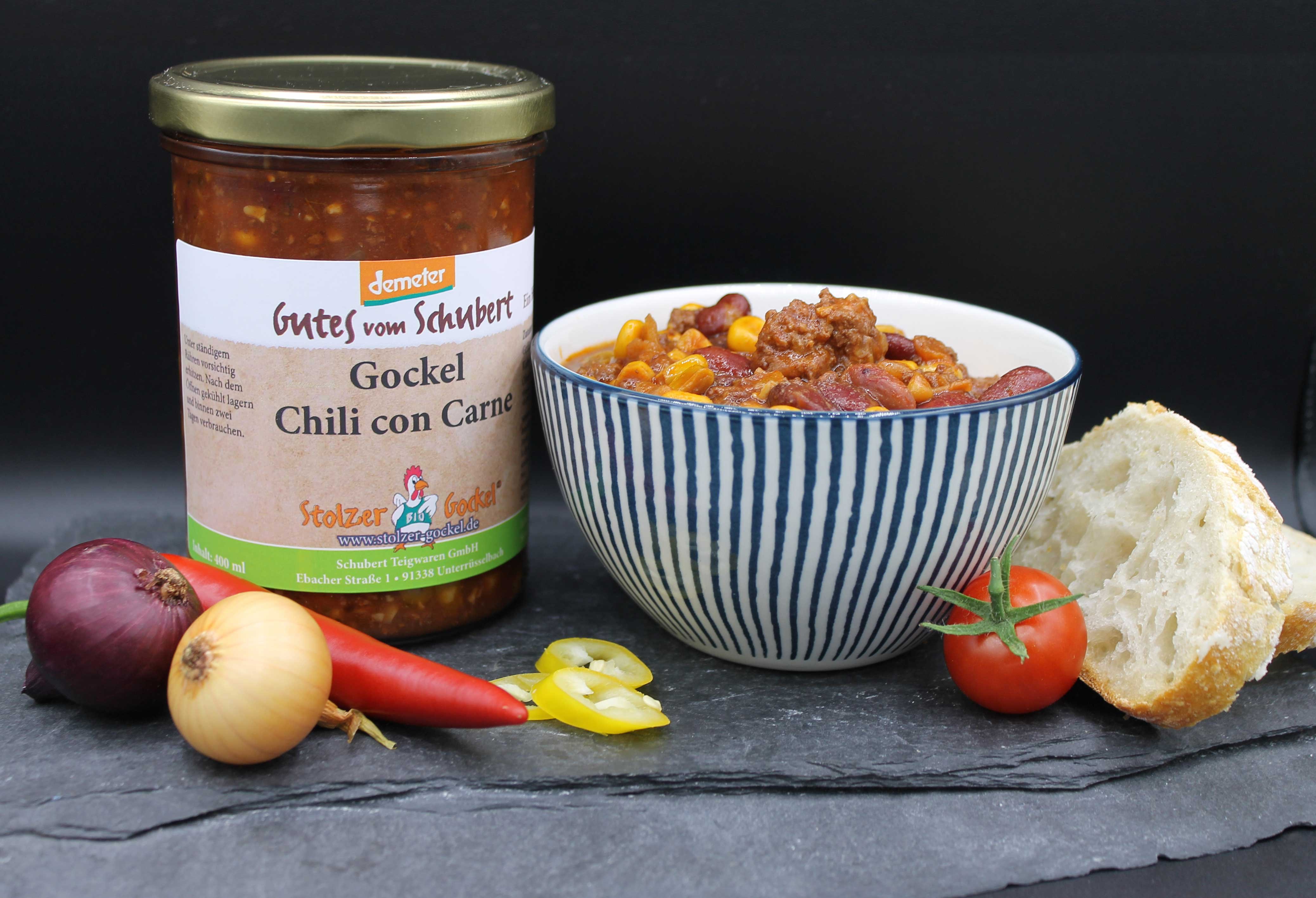 Geflügelkochfond (Wasser, Geflügelfleisch*, Steinsalz,), Geflügelhackfleisch* (16%), Zwiebeln*, Tomaten*, Mais*, Kidney Bohnen**, Tomatenmark**, Steinsalz, Rohrohrzucker*, Olivenöl*, Knoblauchgranulat**, Chilipulver**, Oregano**,