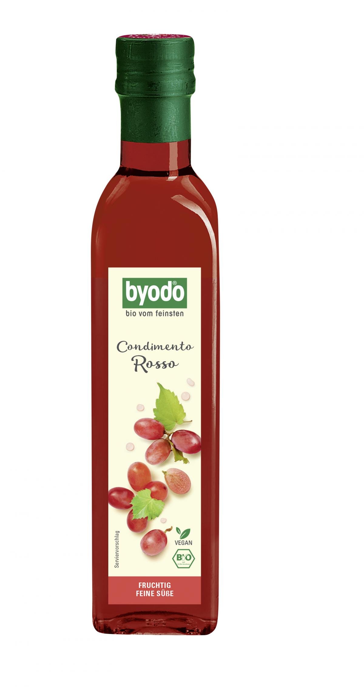 Ein wunderbar fruchtiges Geschmackserlebnis birgt der Byodo Condimento Rosso (5,5% Säure) in sich. Der rote, italienische Balsamessig kommt direkt aus Modena, dem Herzen der italienischen Essigproduktion, und begeistert mit seiner intensiven Fruchtigkeit. Diese erhält er dank der perfekten Kombination von Rot- und Weißweinessig mit konzentriertem Traubenmost. Mit seiner milden Säure ist er vielseitig einsetzbar in der genussvollen Küche.