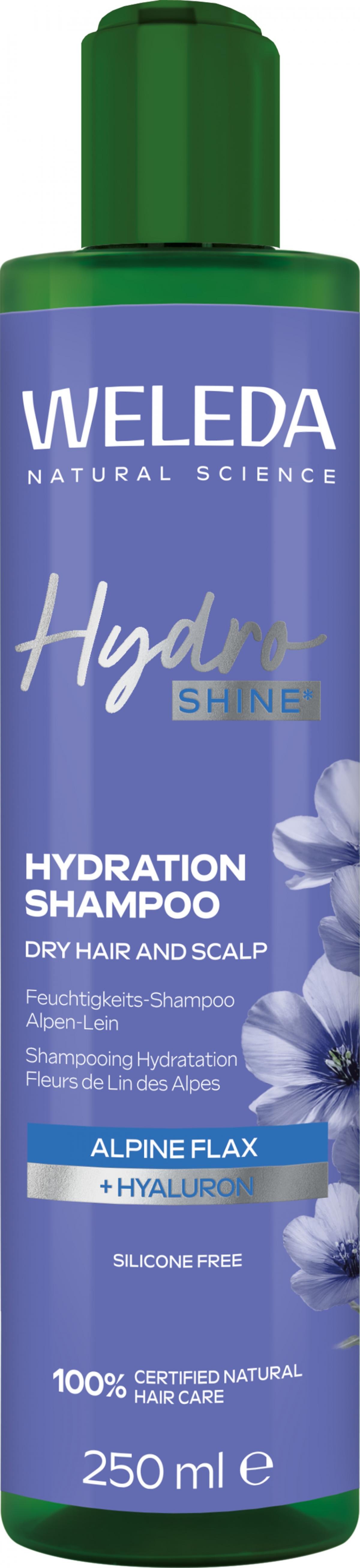 Das Hydra Shine Shampoo mit Hyaluronsäure und Alpen- Lein versorgt das Haar mit Feuchtigkeit und pflegt die Kopfhaut. Die Formulierung mit 100% natürlichem Duft und Tensiden auf pflanzlicher Basis reinigt von Schmutz und Talg. * Für glänzendes Haar: Shampoo sanft in den Haaransatz einmassieren und gründlich ausspülen. Dann Hydra Shine Conditioner und Hydra Shine Haaröl anwenden - auch für bessere Kämmbarkeit!