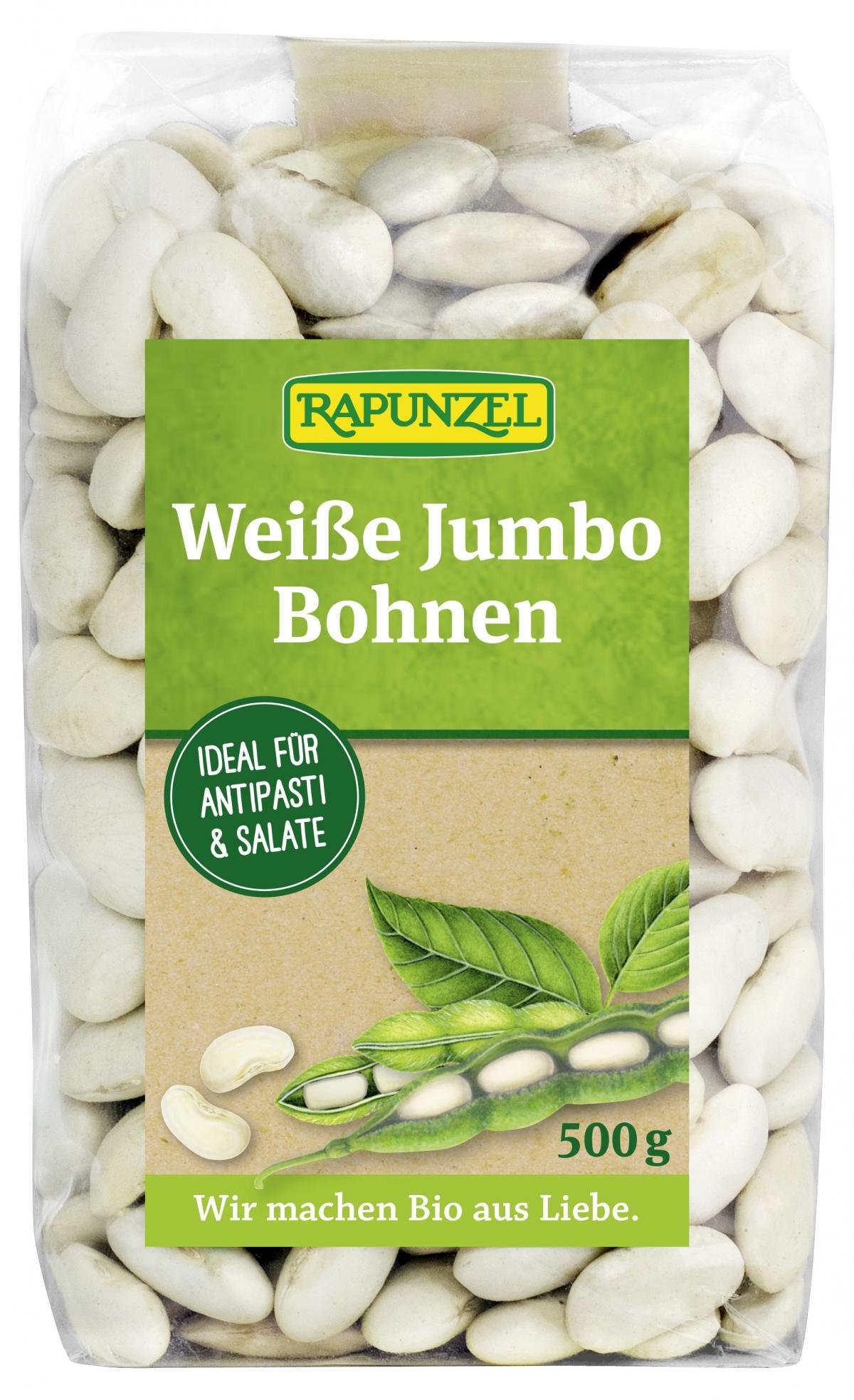 Die aromatischen und leicht süßlich schmeckenden Jumbo-Bohnen sind besonders dekorativ, schmackhaft und liefern reichlich Proteine und Ballaststoffe. Sie kochen mehlig und behalten dabei ihre schöne Form. Weiße Jumbo Bohnen eignen sich hervorragend als Antipasti und Salate. Sie sind auch als Gigantes oder Riesenbohnen bekannt. Der Anbau von Eiweißpflanzen wie Linsen, Bohnen oder Lupinen trägt zu einer vielfältigeren Fruchtfolge und damit zur Erhaltung der Bodengesundheit bei. Leguminosen benötigen im Anbau keinen Stickstoffdünger und reduzieren so die Belastung des Bodens. Gleichzeitig fördern sie durch die Anreicherung von Luftstickstoff in ihren Wurzeln die Bodenfruchtbarkeit. Außerdem dienen sie als wichtige Nahrungsgrundlage für Bestäuber wie beispielsweise Bienen.
