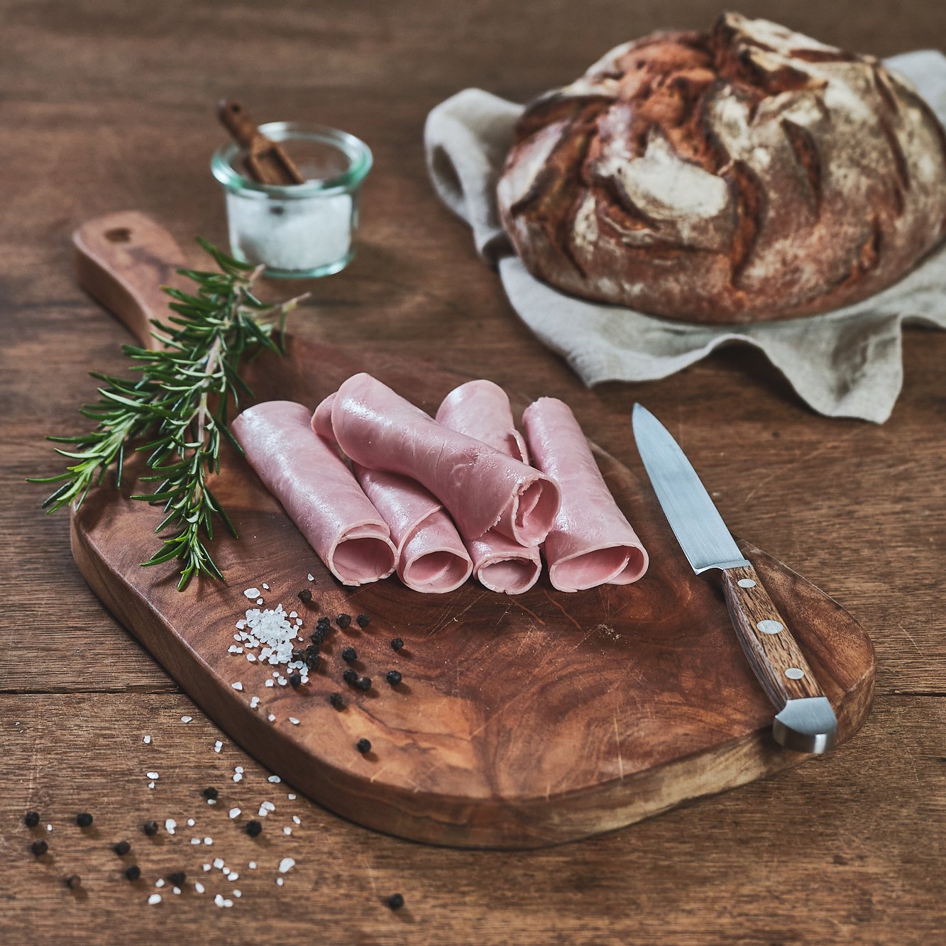 Schweinefleisch**, Trinkwasser, Steinsalz, Natriumcitrat, Buchenholzrauch